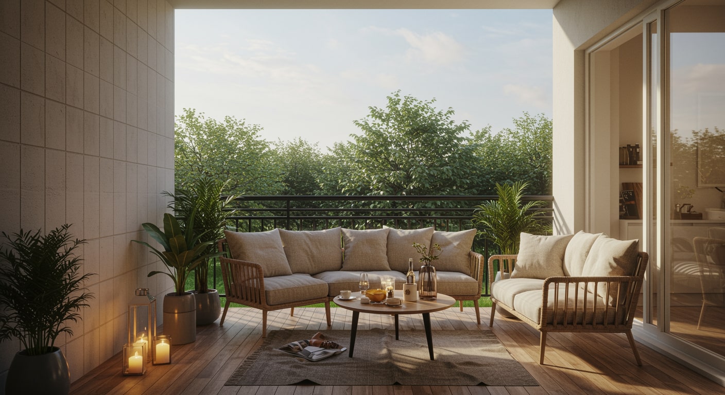Na balkonie, gdzie warunki pogodowe bywają nieprzyjazne, najlepiej sprawdzają się technorattan, metal i drewno z impregnacją.